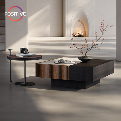 Table basse minimaliste italienne en pierre frittée Ensemble de table d'appoint pour salon et maison Table d'appoint créative haut de gamme en placage de bois fumé