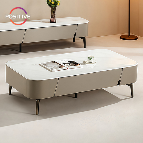 Ensemble de table centrale rectangulaire de luxe léger pour salon table d'appoint avec rangement pour la maison table basse minimaliste en marbre pour petit appartement
