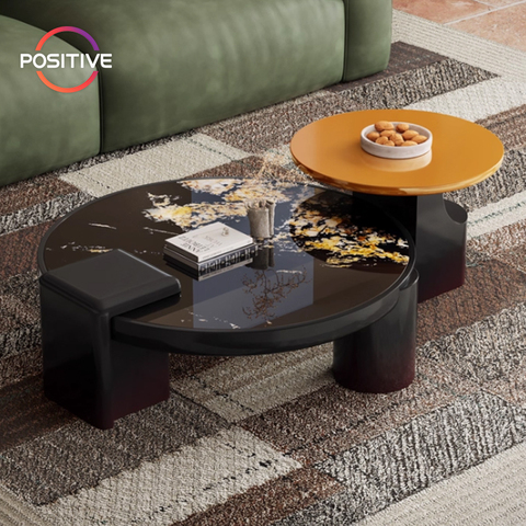 Ensemble de table basse ronde de style vintage Table de centre créative de créateur Table basse ronde de taille de salon artistique