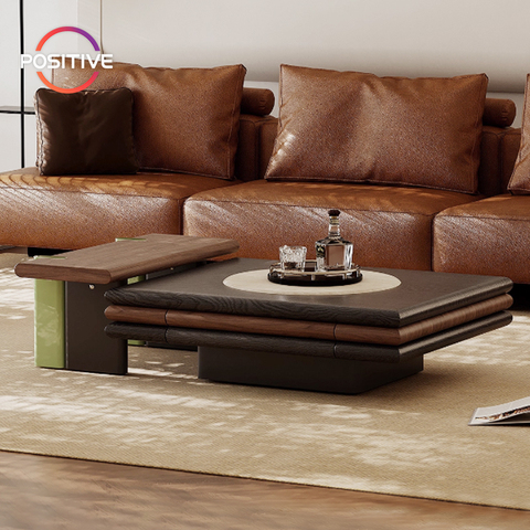 Table basse rectangulaire de luxe légère Nouvelle maison Finition en bois massif Table d'extrémité Salon Designer Rangement créatif Table à thé